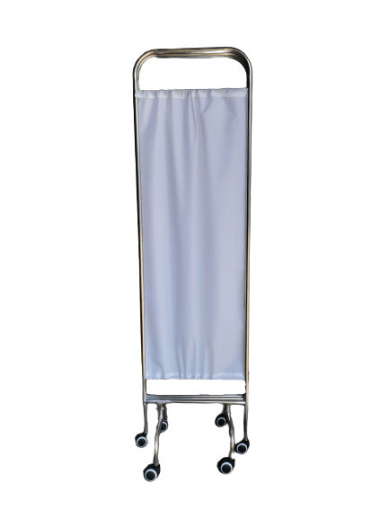 Stainless steel frame. Locking castors. White curtain.